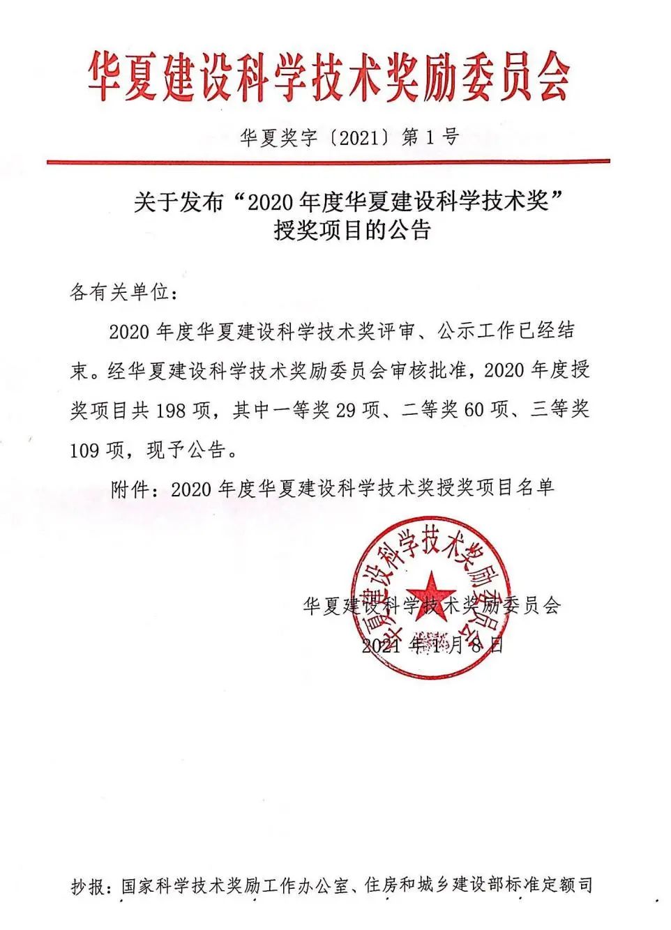 “2020年度華夏建設科學技術(shù)獎”授獎公告。
