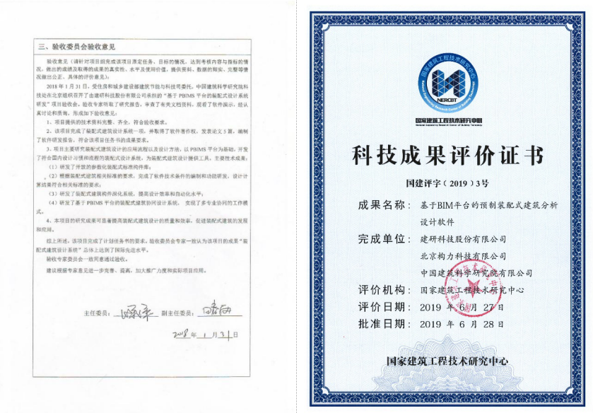 經專家評定,項目的成果可顯著提高裝配式建筑設計的質量和效率,促進裝配式建筑的發展和應用,總體上達到了國際先進水平,軟件成果具有廣泛的推廣應用價值。