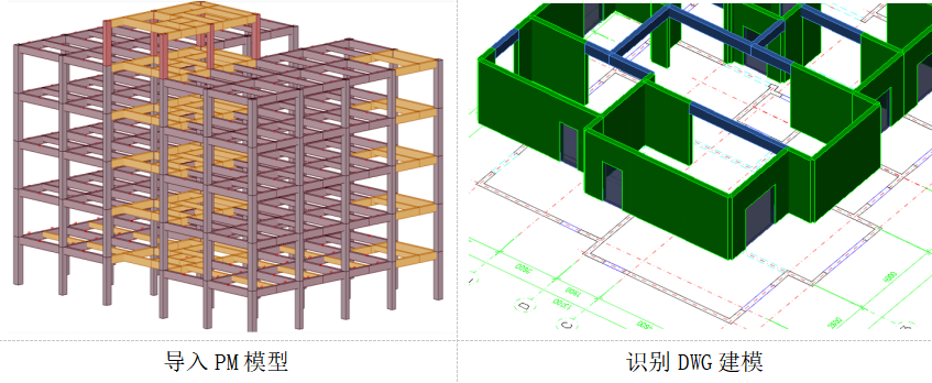 支持模型創建,同時可通過導入結構計算模型(.jws)、識別二次CAD圖紙(含方案拆分圖紙)等方式快速形成裝配式項目模型,進行深化設計。