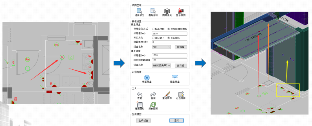 基于BIM協同下機電模型專業提資或直接識別機電CAD圖紙,批量生成預留預埋,解決各類預埋件復雜點位布置問題。