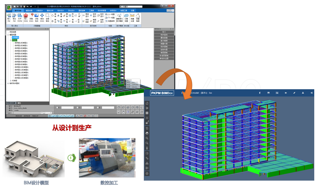 模型數據可基于BIM平臺對接PKPM智慧工廠管理系統,驅動生產加工設備,實現設計生產一體化。