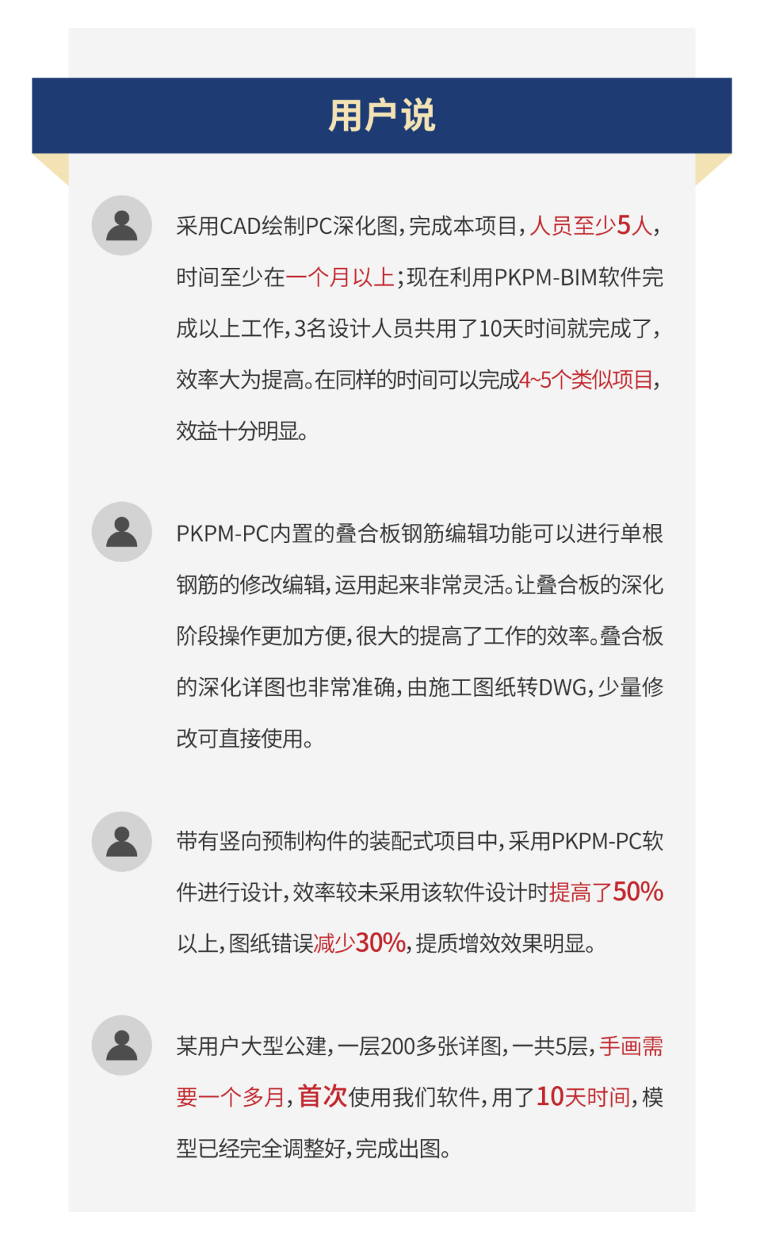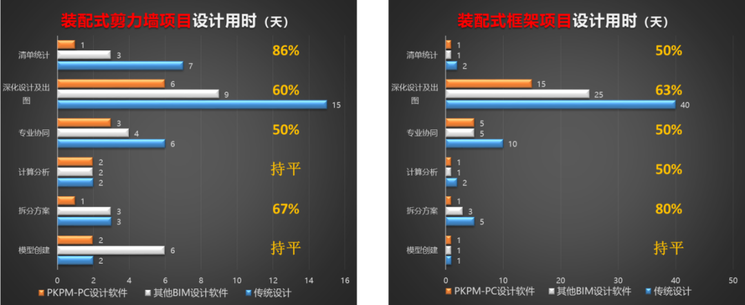 經大量實際工程項目應用,與基于傳統 CAD 軟件的設計方式相比,PKPM-PC可提高裝配式設計效率20%以上,降低80%的拼裝檢測的人工量,減少了大量錯漏碰缺現象的發生,設計精度大為提高。