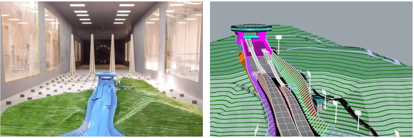 2022年冬奧會跳臺滑雪比賽中心是國內首座跳臺滑雪場館,項目位于河北省張家口市崇禮區東部山區,是冬奧會張家口賽區建設工程量最大、技術難度最高的競賽場館。但由于周邊山地影響該項目的風荷載計算非常復雜,建筑抗風研究所承擔了風洞試驗和風振計算,為設計方提供了準確的風荷載計算取值依據,為該項目的抗風安全提供了重要保障!
