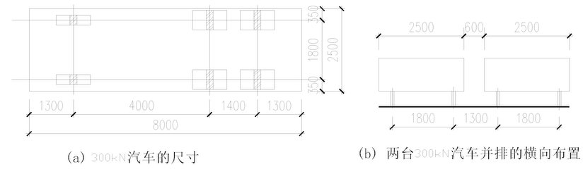 消防車輪胎布置與輪壓(局部荷載作用位置、范圍和大小)2軸、3軸、5軸