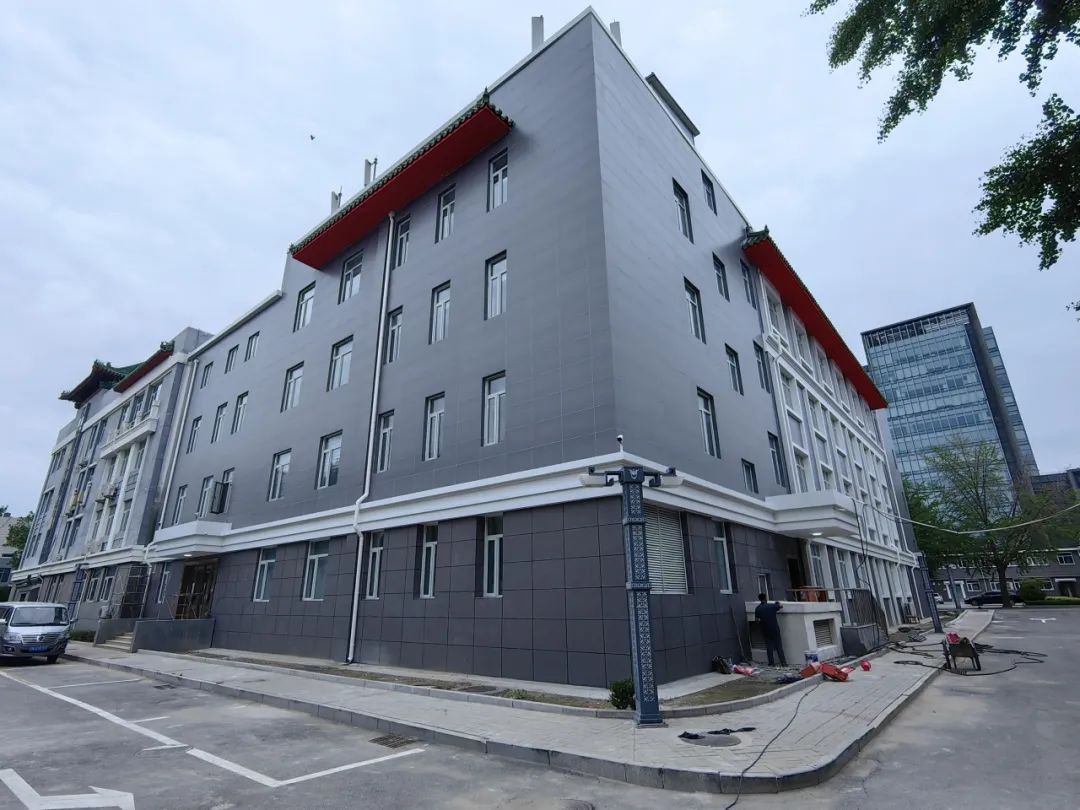 商務部國際經濟貿易合作研究院(以下簡稱“商務部研究院”)東配樓外保溫墻修復工程于8月24日成功通過項目驗收,并獲得項目方高度評價與認可。項目外墻外保溫的改造全部采用了由中建研科技自主研發的產品“建研悠崮CABR/T——陶瓷薄板飾面保溫裝飾一體板”。