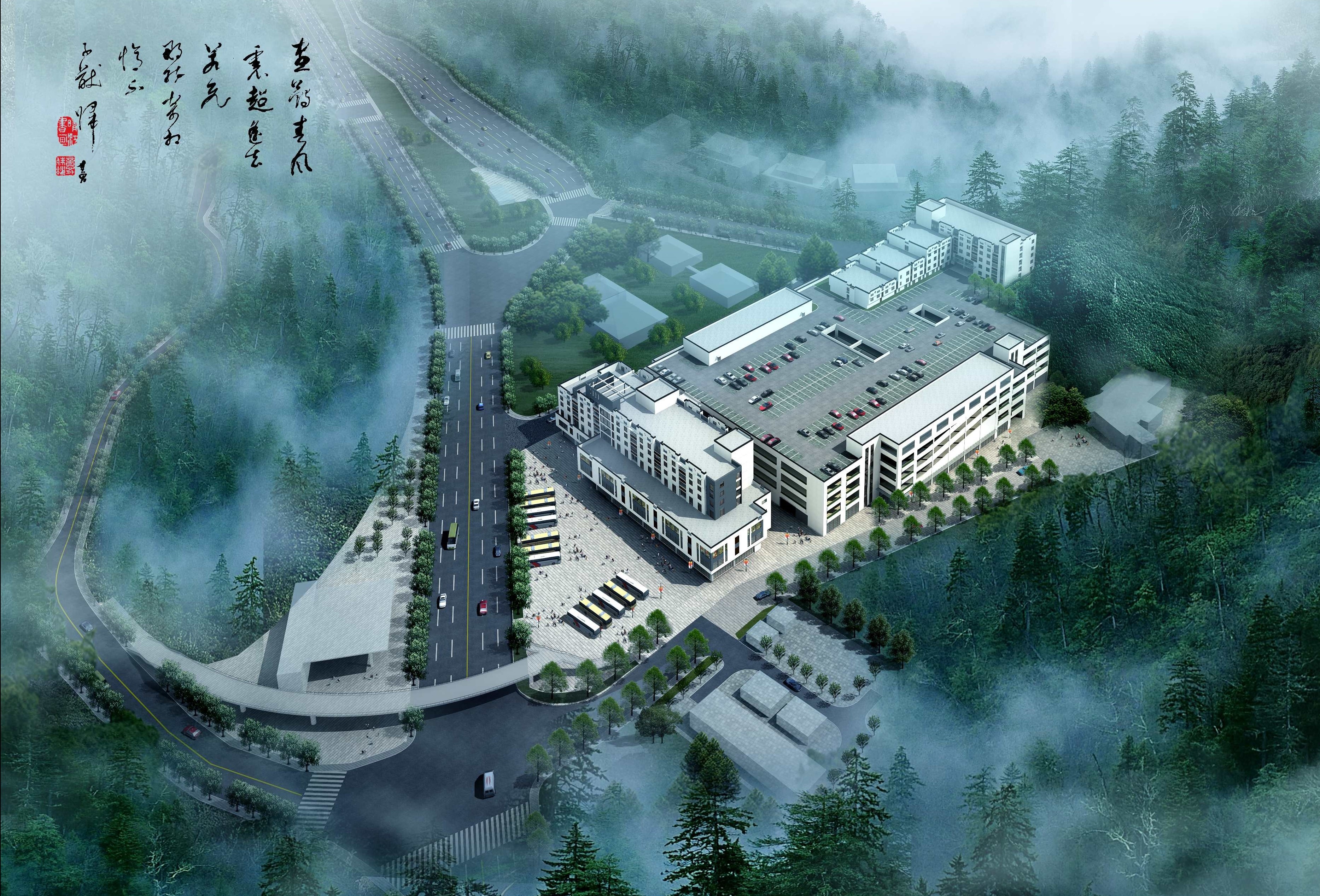 全專(zhuān)業(yè)設(shè)計(jì)。該項(xiàng)目位于黃山湯口鎮(zhèn)高速出入口南側(cè)、黃山風(fēng)景區(qū)南入口,總建筑面積7萬(wàn)m2,由A、B兩樓組成,A樓7層,主要功能為商業(yè)及公寓;B樓主體4層,主要功能為車(chē)庫(kù)。車(chē)庫(kù)主體采用預(yù)應(yīng)力混凝土框架結(jié)構(gòu),實(shí)現(xiàn)了8.5m×13m的便利使用空間。