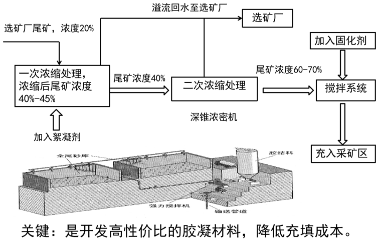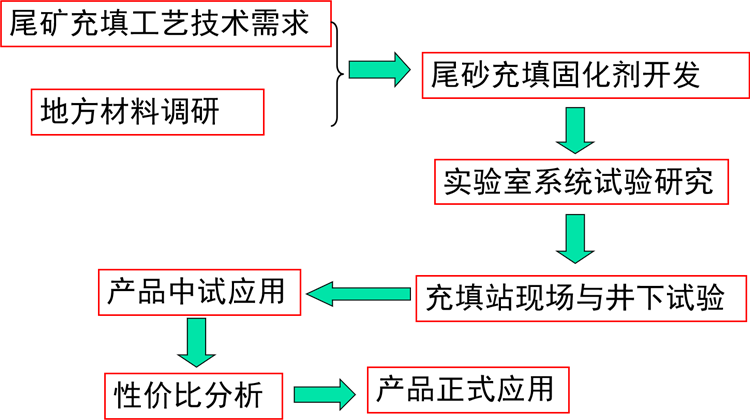 早期強(qiáng)度可調(diào)整,后期強(qiáng)度持續(xù)發(fā)展;充填體微膨脹,容易接頂;充填體凝結(jié)硬化時間可調(diào)整;易于輸送,管道磨耗??;可處理全尾礦或分級尾礦;材料無毒無害,充分利用廢渣資源,低碳、綠色環(huán)保。?工作流程