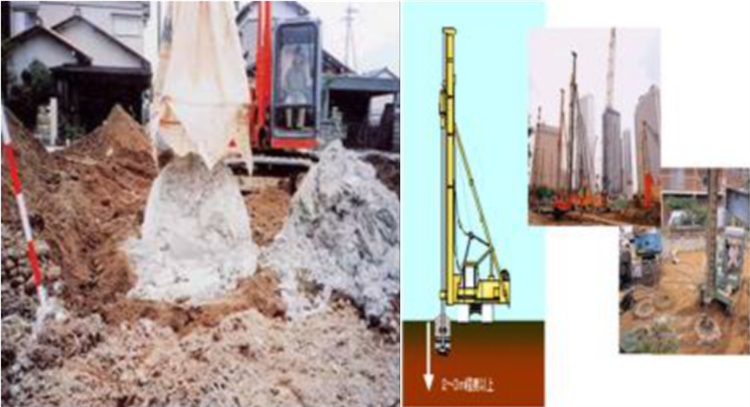 利用和尾砂膠結(jié)固化相似的技術(shù)思路和原材料,將固化劑與原位軟土通過機(jī)械拌合后形成具有足夠強(qiáng)度的固化土,從而達(dá)到地基加固的目的。