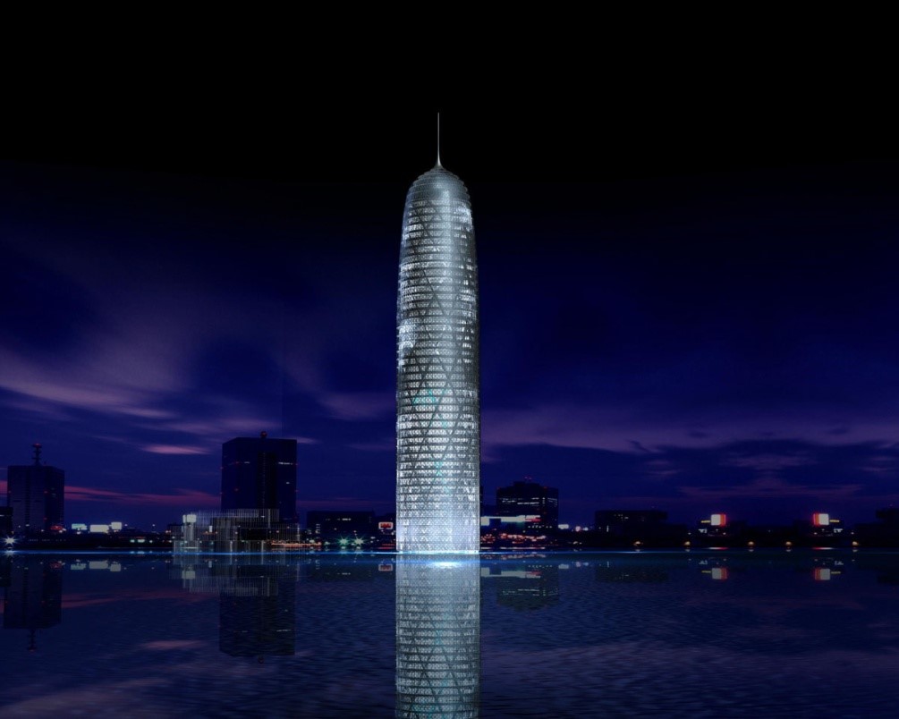 預(yù)應(yīng)力設(shè)計(jì)與施工。筒中筒結(jié)構(gòu),樓面為無(wú)粘結(jié)預(yù)應(yīng)力平板,地下4層,地上54層,總高度241m,該工程獲“詹天佑”建筑獎(jiǎng)。